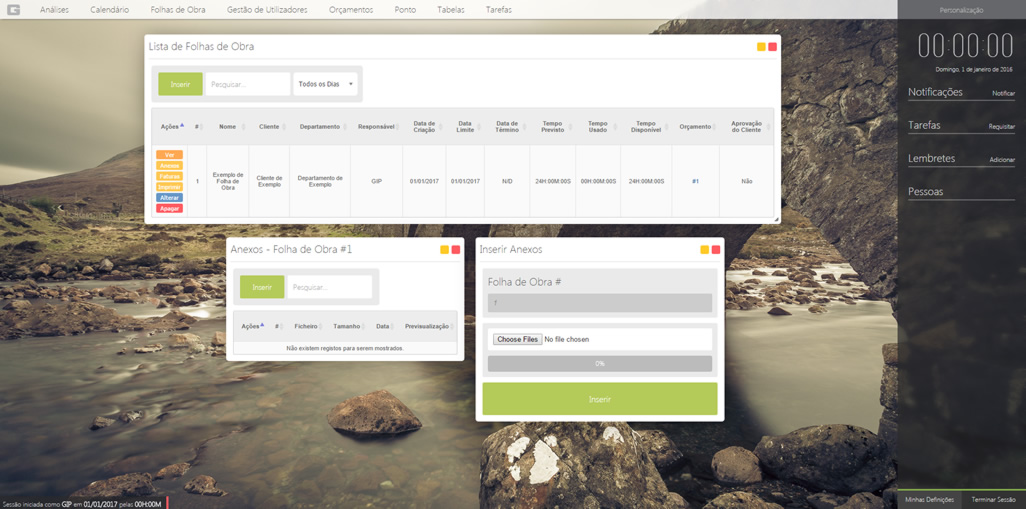 Qualquer ficheiro relacionado à folha de obra que queira tornar público para consulta dos vários integrante do projeto pode carregá-la aqui. Este módulo é separado das faturas para que possam existir permissões separadas.