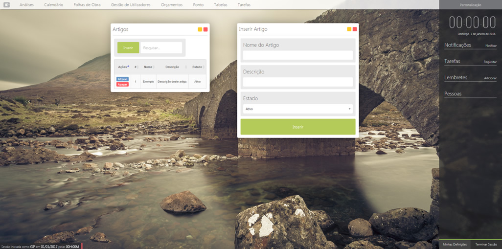 Para qualquer tabela existem as opções de inserir, alterar e apagar. Simplesmente clique no botão referente à ação e siga os passos. Depois é só clicar no botão de guardar para registar as alterações.