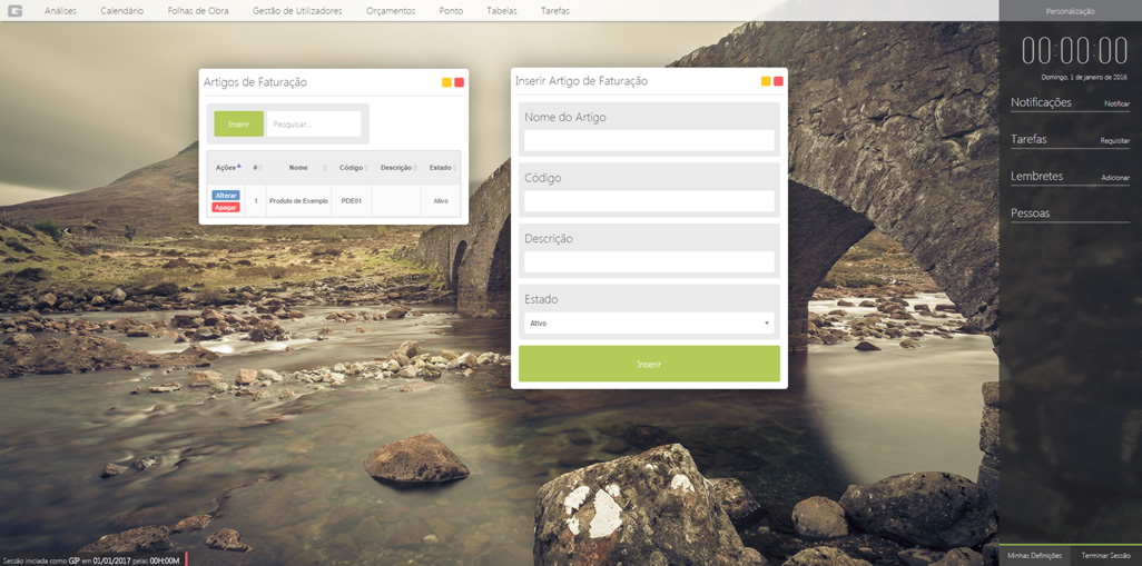 Os artigos de faturação são os artigos usados nas folhas de obra. Deve existir o artigo de faturação antes de ser inserida uma folha de obra.