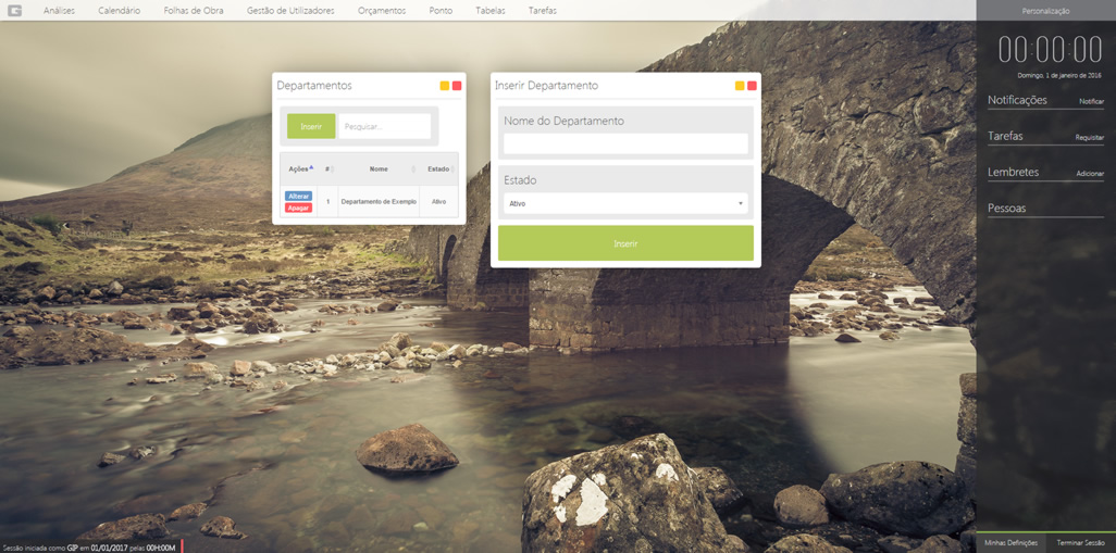 Nos departamentos pode registar todos os departamentos existentes na sua empresa. Deve existir o departamento antes de ser inserida uma folha de obra.