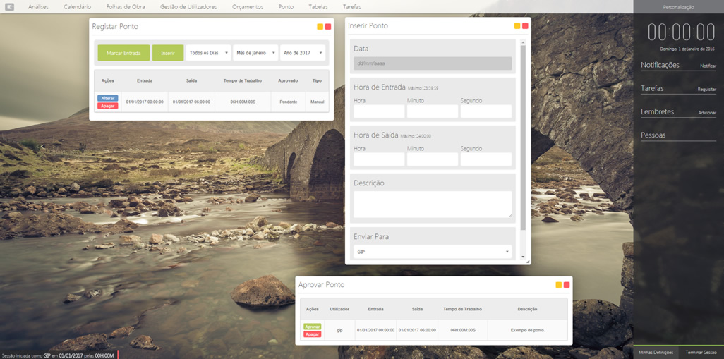 O ponto serve para ter controlo sobre as horas trabalhadas pelos utilizadores. Cada vez que estiver a trabalhar em tarefas o ponto é iniciado automaticamente. Se terminar o ponto qualquer tarefa iniciada é parada. Consegue ainda fazer alterações a registos de ponto anteriores caso se tenha esquecido de o terminar e consegue ainda inserir registos de ponto que requerem aprovação de um administrador.