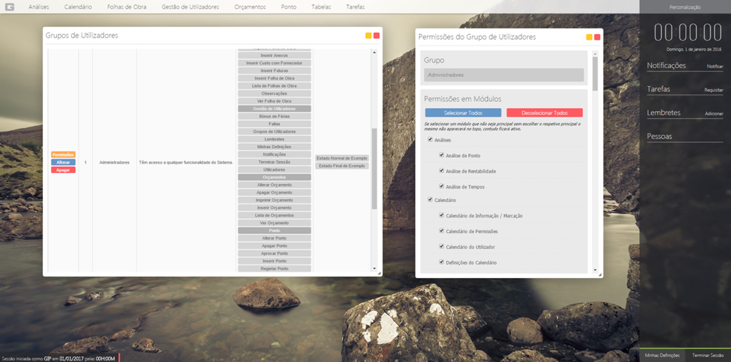 A gestão dos grupos de utilizadores é feita aqui. Pode criar diferentes grupos com diferentes permissões de acesso.