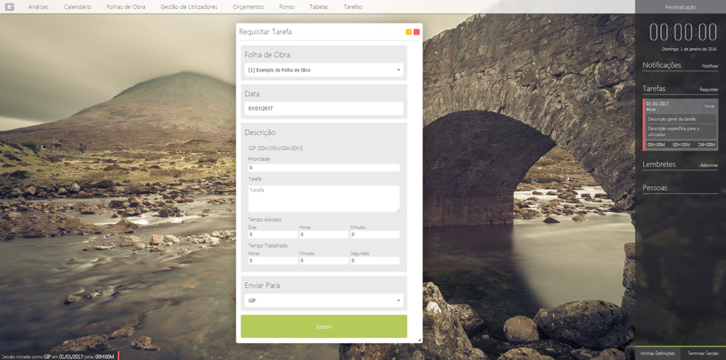 O tempo trabalhado refere-se ao tempo já trabalhado mas não registado no GIP pelo utilizador na tarefa.