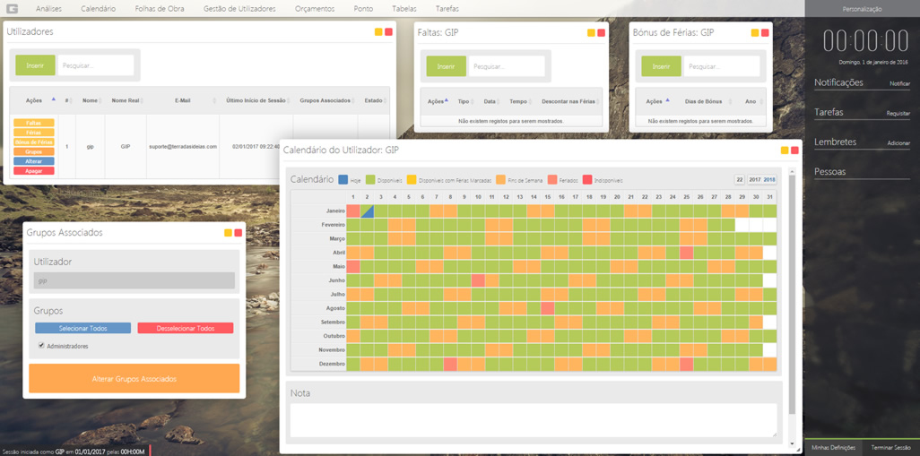 Nos utilizadores pode fazer a gestão dos funcionários da sua empresa. As funcionalides associadas à gestão de utilizadores são faltas, férias, bónus de férias e grupos. Pode óbviamente ainda inserir, alterar e apagar utilizadores.